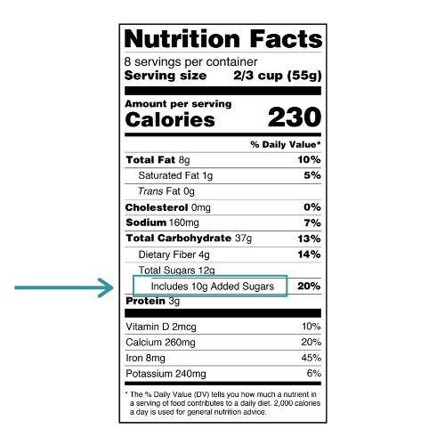Juice often contains added sugars. Check the Nutrition Facts label to see how much has been included. You may notice that the Nutrition Facts labels on foods and drinks have changed recently. Review our sample Nutrition Facts label to see where added sugars can be found on the new Nutrition Facts label.