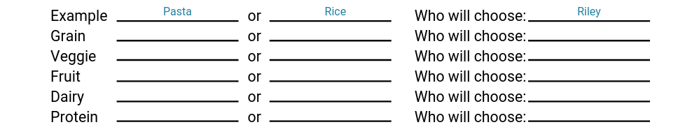 Note: If your children are very young, consider using pictures or real foods to help them choose.