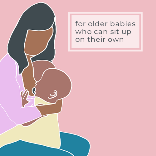 This position is only recommended for babies who are old enough to sit up on their own. While you are sitting down, place one baby on each of your legs, and have them facing towards you. Use your hands to help hold your babies upright safely as they feed.